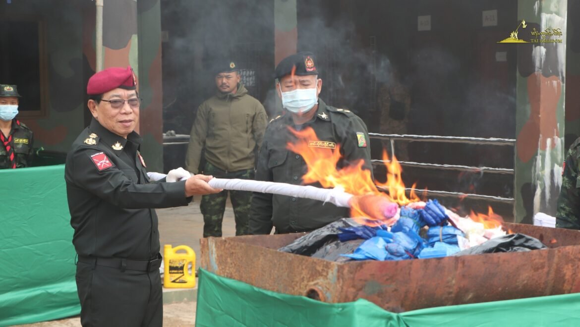 သျှမ်းပြည်ပြည်လည်ထူထောင်ရေးကောင်စီ (RCSS/SSA) က ဖမ်းဆီးရမိတဲ့ မူးယစ်ဆေးဝါးတွေကို မီးရှို့ဖျက်ဆီးခဲ့တယ်လို့ သိရပါတယ်။