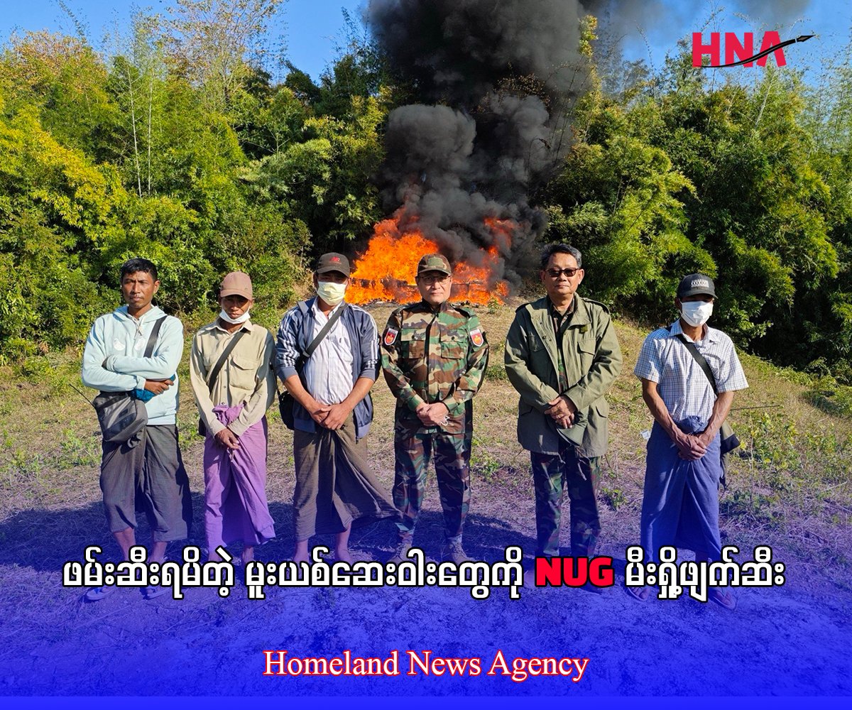 အမျိုးသားညီညွတ်ရေးအစိုးရ (NUG) ထိန်းချုပ် နယ်မြေအတွင်း ဖမ်းဆီးရမိတဲ့ မူးယစ်ဆေးဝါးတွေကို ပြီးခဲ့တဲ့ ဇန်နဝါရီ ၂၅ ရက်နေ့မှာ မီးရှို့ဖျက်ဆီးခဲ့တယ်လို့ ထုတ်ပြန်လာပါတယ်။