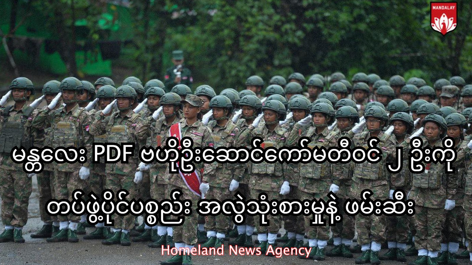 ပြည်သူ့ကာကွယ်ရေးတပ်မတော် (မန္တလေး) ရဲ့ ဗဟိုဦးဆောင်ကော်မတီဝင် ၂ ဦးကို တပ်ဖွဲ့ပိုင်ပစ္စည်း အလွဲသုံးစားမှုနဲ့ လက်နက်ဖြုတ်သိမ်း၍ ဖမ်းဆီးထိန်းသိမ်းထားတယ်လို့ ထုတ်ပြန်ခဲ့ပါတယ်။