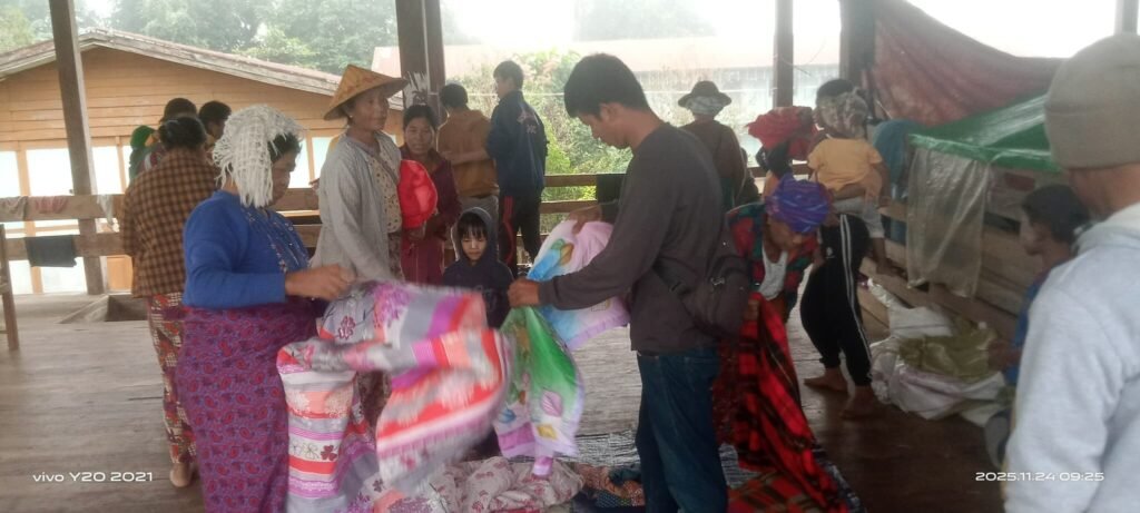ကတူးရဟန်းတော်များအဖွဲ့က “နိုဝင်ဘာ ၂၄ ရက်နေ့မှာ ဒယူးအင်ကြင်းကုန်းစစ်ရှောင်စခန်းတွေထံ အအေးဒဏ်ဖယ်ရှား စောင်အထည်တွေ ဆက်လက်လှူဒါန်းခဲ့ပါတယ်။ အိမ်ထောင်စုနည်းရင် တစ်ထည် အိမ်ထောင်စုများရင် နှစ်ထည်ပေးဝေပါတယ်။ သက်ကြီးရွယ်အို အဖိုးအဖွားခြောက်ယောက်ကို စောင်တစ်ထည်စီ ဝေပါတယ်” လို့ ထုတ်ပြန်ပြောဆိုထားပါတယ်။