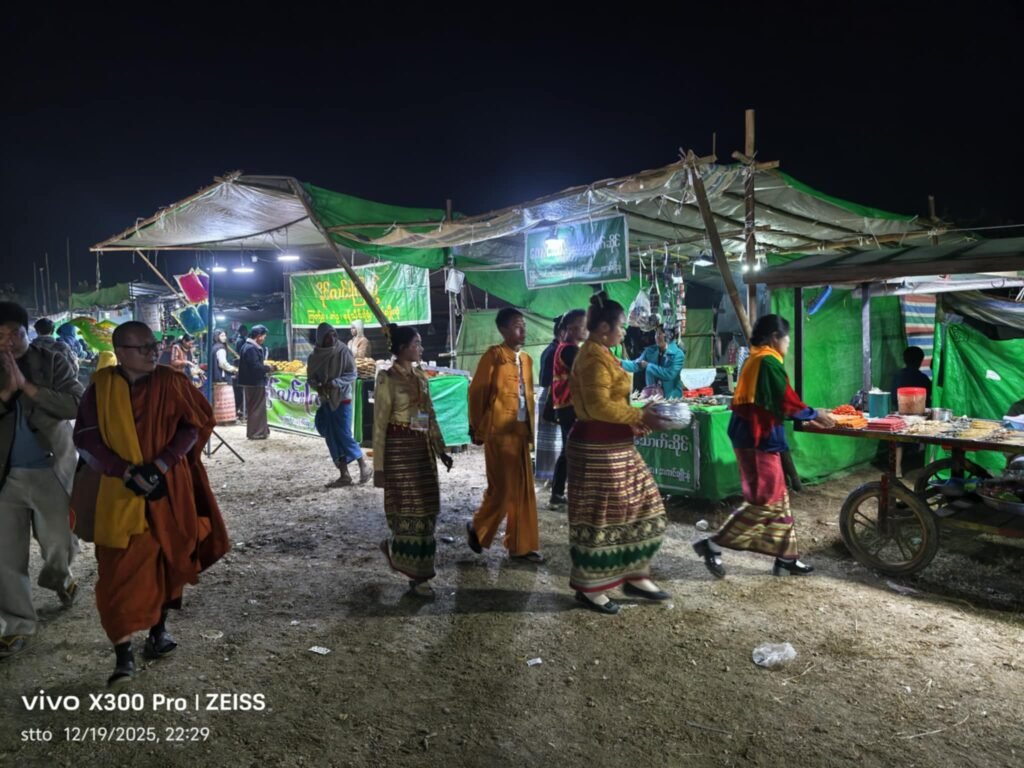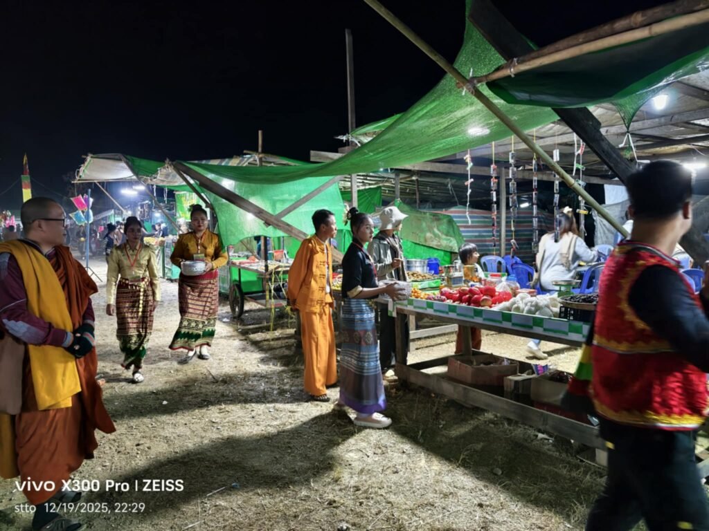 “ပွဲတော် ၄ ညမြောက်မှာ ဒေသတွင်းစစ်ဘေးရှောင်တွေအတွက် အလှူခံကြပါတယ်။ ပရိတ်သတ်နဲ့ စျေးဆိုင်တွေမှာ အလှူခံလှည့်တာပါ။ အလှူငွေ ၃၉ သိန်းရပါတယ်။ ဒါတွေကို ဒေသတွင်း စစ်ဘေးရှောင်တွေကို လှူဒါန်းသွားမှာပါ” လို့ ပြောပါတယ်။