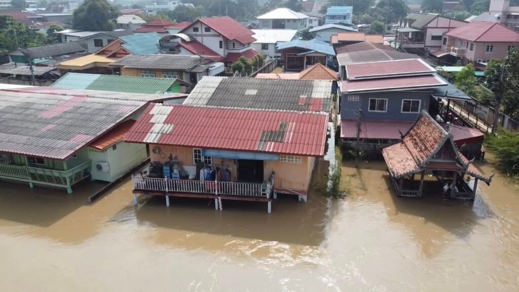 အယုဒ္ဓခရိုင် ကျောက်ဖရားဆည်ကနေ ရေယိုစိမ့်မှုမြင့်တက်လာတာကြောင့် အယုဒ္ဓယပြည်နယ်တစ်ဝှမ်း ရေကြီးရေလျှံမှုတွေ ဖြစ်ပေါ်စေခဲ့ပြီး လူနေအရပ်တွေအထိ ရေမြုပ်နေတယ်လို့ Khaosod English မှာ ဖော်ပြပါတယ်။