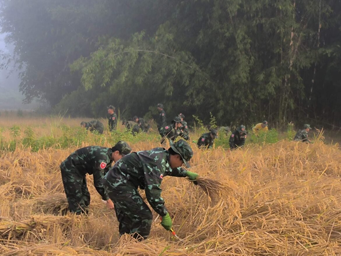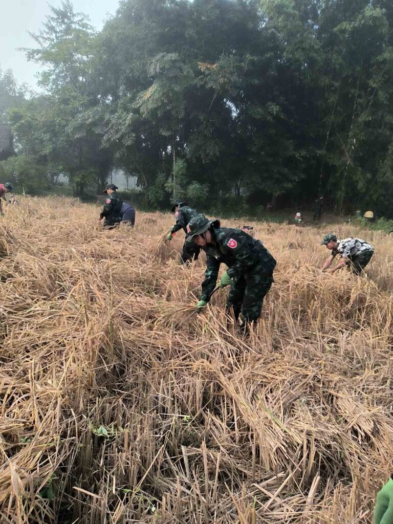 မိုးကောင်းမြိုနယ်၊ တောင်နီကျေးရွာမှ ဒေသခံတောင်သူတွေကို ရှမ်းနီအမျိုးသားများတပ်မတော် – SNA တပ်မဟာ ၅၆၅ မှ စစ်သည်အင်အား ၅၀ ဦးခန့်ဟာ မနေ့က နိုဝင်ဘာ ၂၅ ရက်နေ့မှာ စပါးရိတ်ကူခဲ့တယ်လို့ သိရပါတယ်။