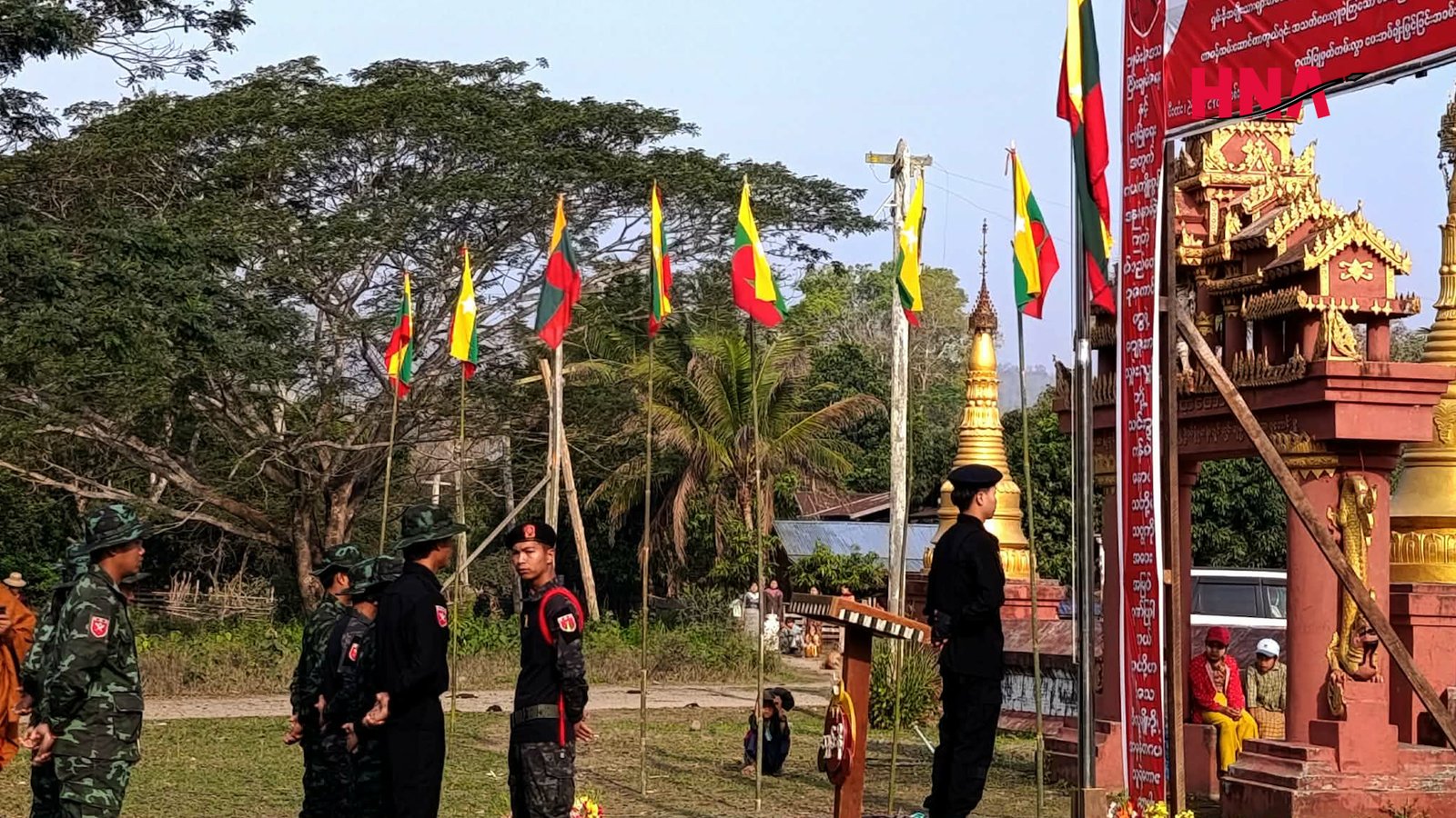 အဲဒီ ဂုဏ်ပြုမှတ်တမ်းလွှာ ပေးအပ်ချီးမြှင့်ခြင်း အခမ်းအနားကို ရှမ်းနီအမျိုးသားများ တပ်မတော် (SNA) တပ်ဟာမ ၆၁၄ နယ်မြေမှာ ကျင်းပပြုလုပ်ခဲ့ပြီး SNA မှ ခေါင်းဆောင်တွေ တပ်ဖွဲ့ဝင်တွေ နဲ့ ပြည်သူလူထုတွေ တက်ရောက်ခဲ့တယ်လို့ ဒေသခံတဦးက ပြောပါတယ်။